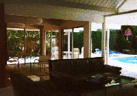 Left: Entering our glass-walled living room from the atrium.