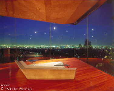 Chemosphere's narrow 45-degree sloping lot, he can devise the new structural principles and elements required to built on it. He can also invent new building methods. He attached the steel girders supporting Chemosphere to the central concrete column with epoxy -- in 1960!Lautner buildings have integrity because John Lautner has integrity. In a career that has spanned over fifty years, Lautner has never deviated from his principles nor allowed fashion or cliche or anything other than the logic and beauty of a his own vision to be built.